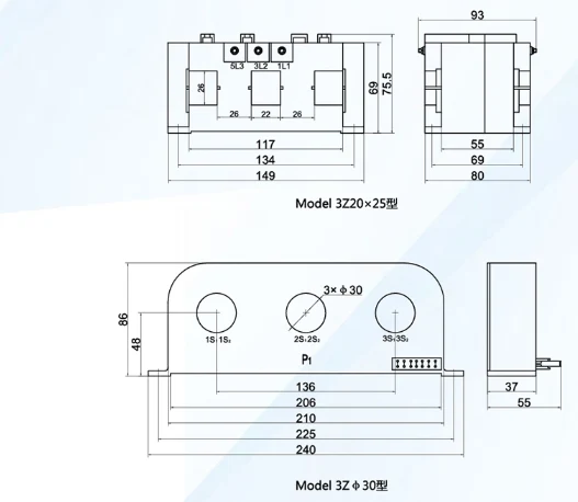 BH-0,66 Seria Z Transformatory prądowe to trójfazowa łączna, kompaktowa struktura, która jest głównie stosowana do stałej dzielonej szafki rozkładu, która ma zalety prostego połączenia, pomiaru prądu, pomiaru energii elektrycznej i ochrony przekaźnika.